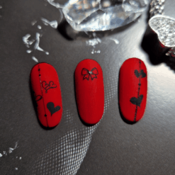 Krémový gél lak v odtieni cezmínovo červenej (magyal červená), s vysokým obsahom pigmentu, ktorý zabezpečuje dokonalé krytie už v jednej vrstve.
